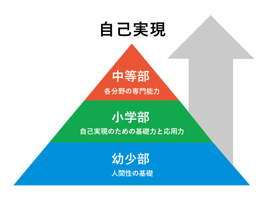 これまでに育んできた家族との信頼関係や、人間性の基礎、そしてこれまでに身につけた「基礎力・応用力」を土台に、子ども一人ひとりが自らの興味・関心や好奇心に従って「専門性」を育むフェーズに入ります。